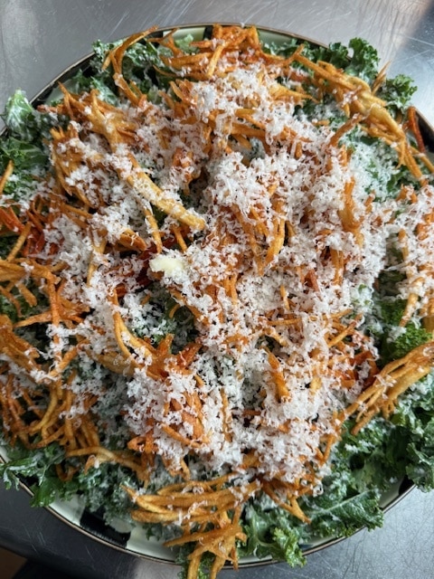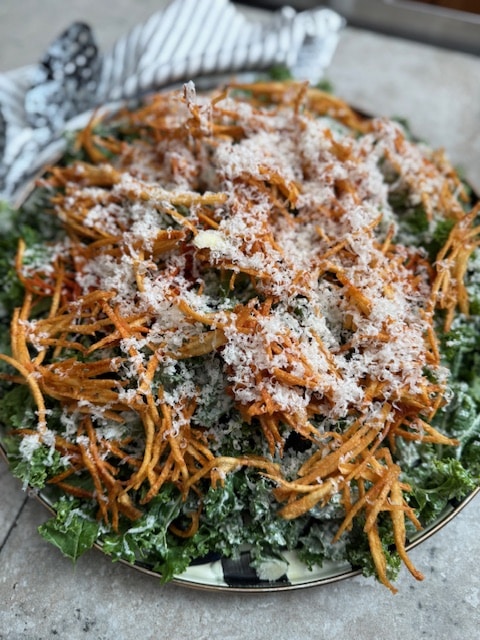 A couple of weeks ago, I was lucky enough to be in Israel along with a delegation with the mayor of NYC, Mayor Adams. There is NOTHING quite like an Israeli hotel breakfast, but the dish that got my attention was a roasted cabbage salad on the salad buffet that changed the way I looked at cabbage salad forever! Roast before you dress? oh YES YES YES!! I met the chef and I had to ask him about my favorite dish, and he graciously shared with me how to make it!